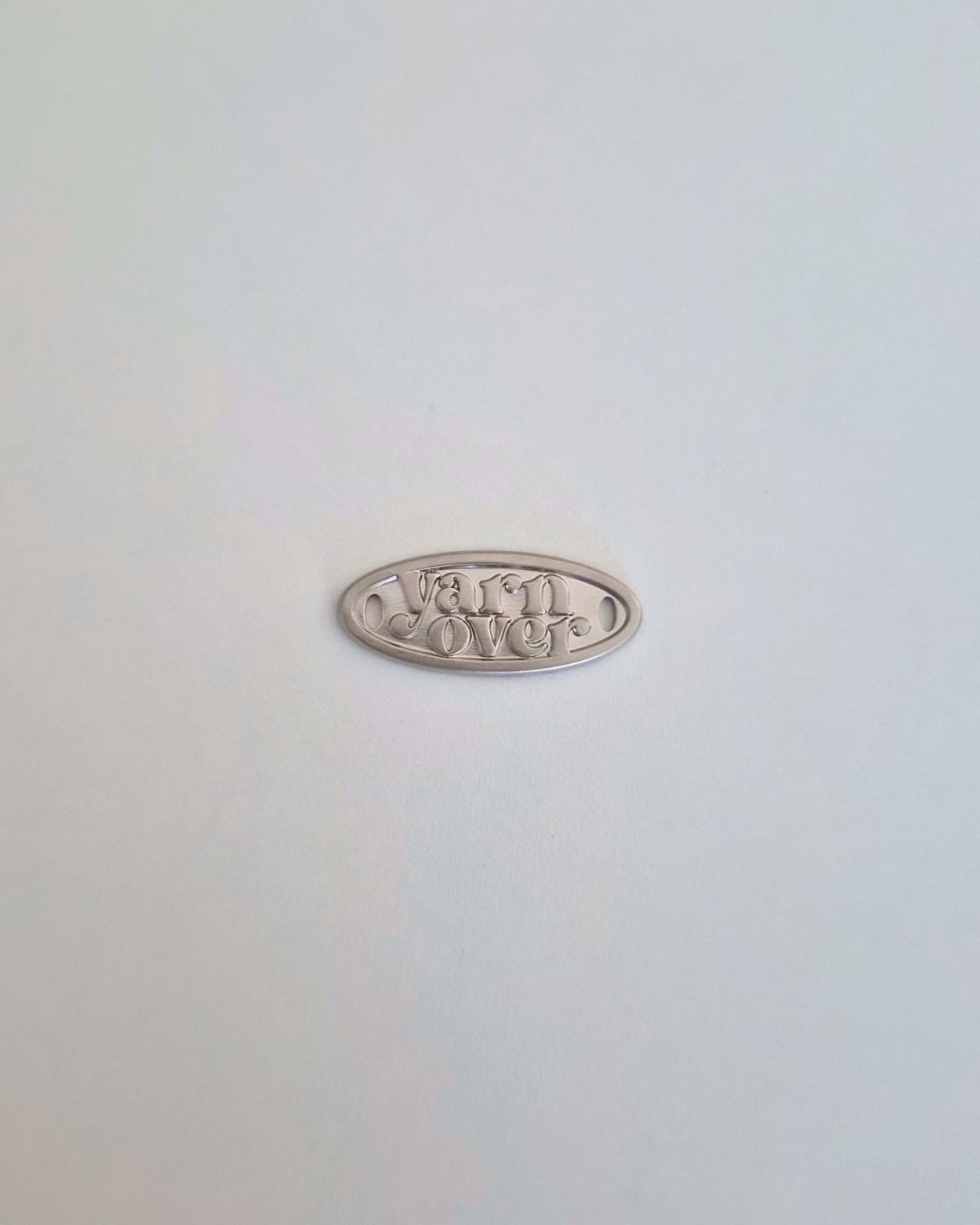 yarning yarningのオリジナルメタルラベルで、編み物作品にさりげなく個性を添えます。